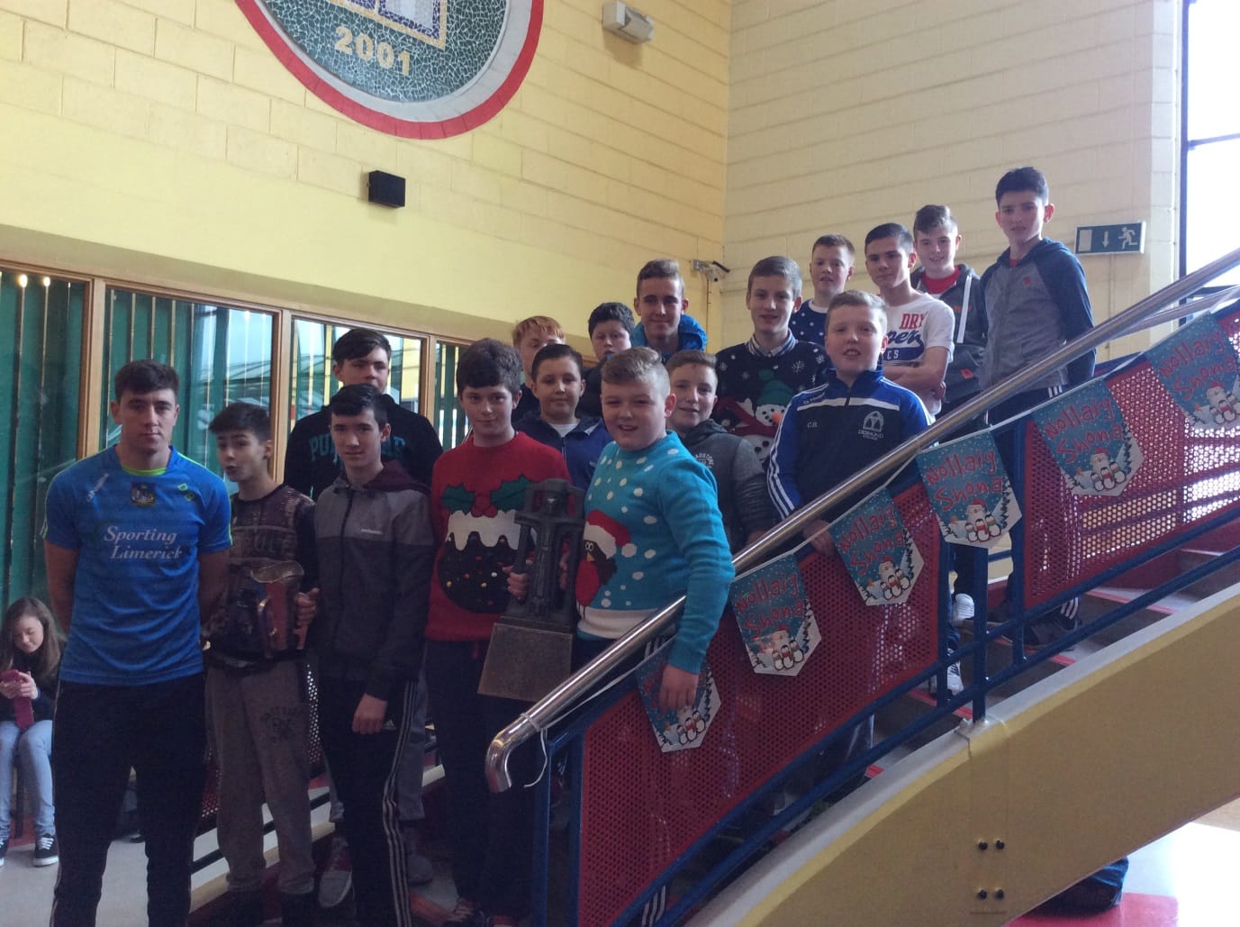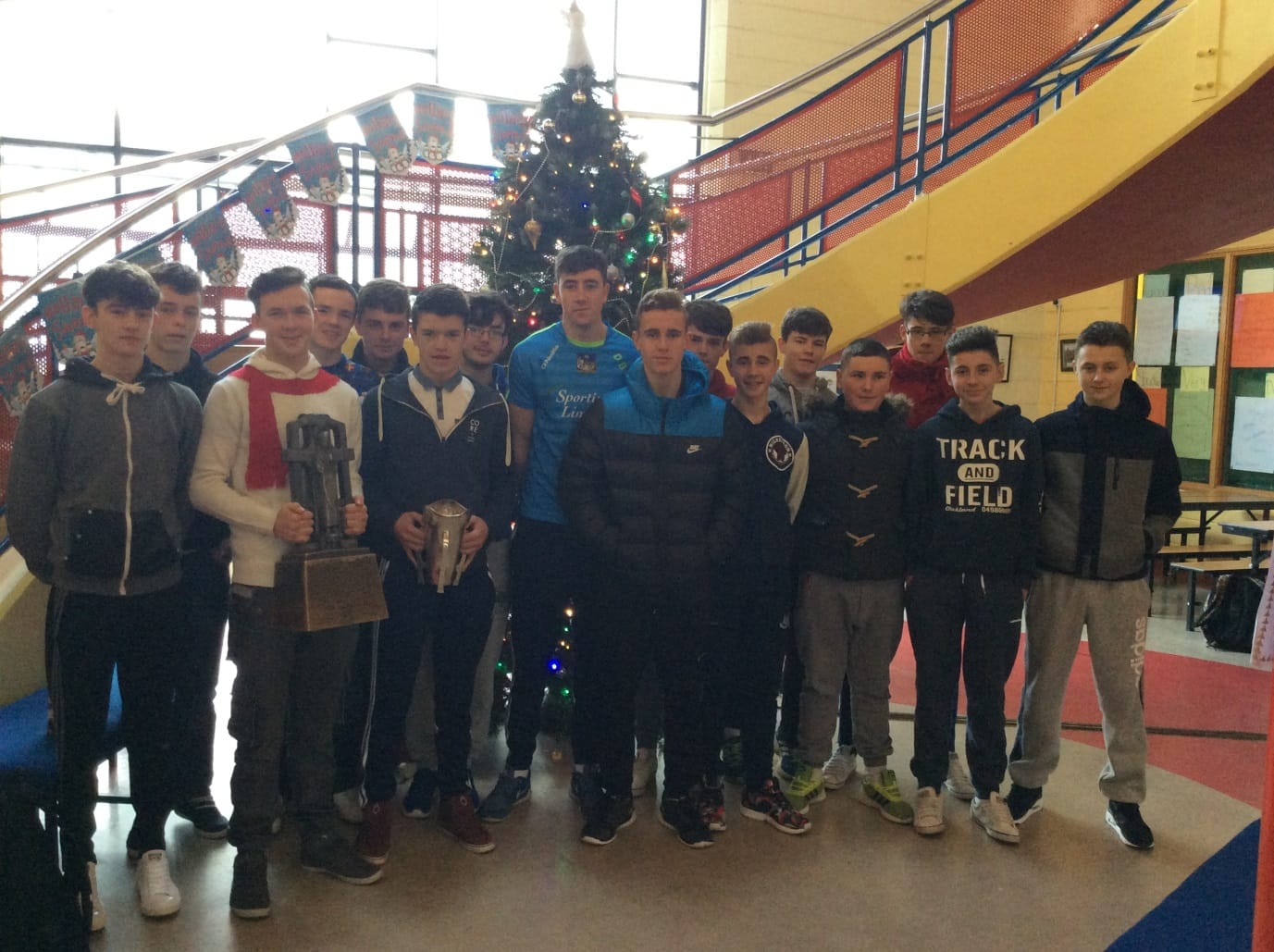 Limerick U-21 hurling captain Diarmuid Byrnes paid a visit to Desmond College with two cups in tow, the Munster championship cup, Corn na Casca and the All-Ireland trophy, The Cross of Cashel.