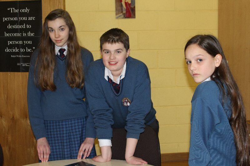 Desmond College winners of the Good Food Company Poster Competition held in Desmond College. The students designed posters which will be used by the company to promote healthy eating in schools. Eve and Chloe won €20 vouchers while Alan won a Tablet.