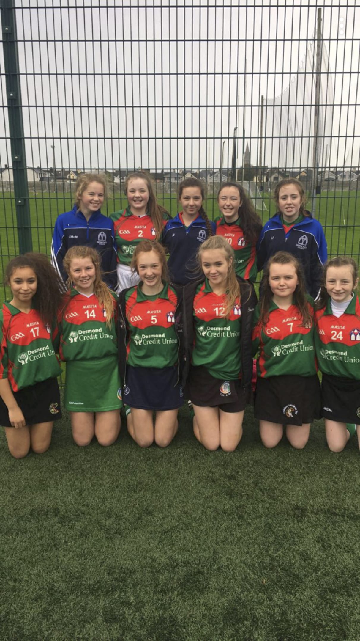 The 1st and 2nd years who took part in the county 7-a-side blitz yesterday in Mick Neville Park. They made it all the way to the final but lost to a strong Kilfinane team. Well done girls!
