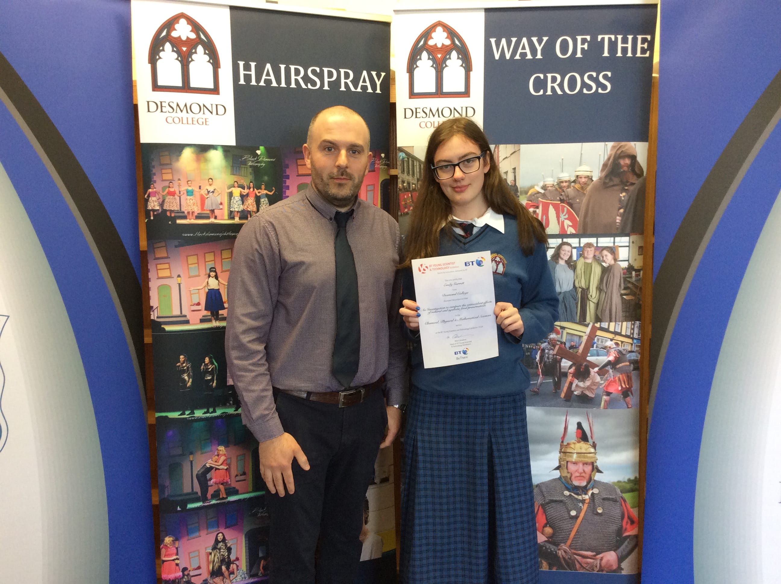 Two students from Desmond College received a special award from Bank of Ireland after receiving the results of their Junior and Leaving Certificate Examinations this year. Both students received their awards for achieving exceptional results in their state exams.